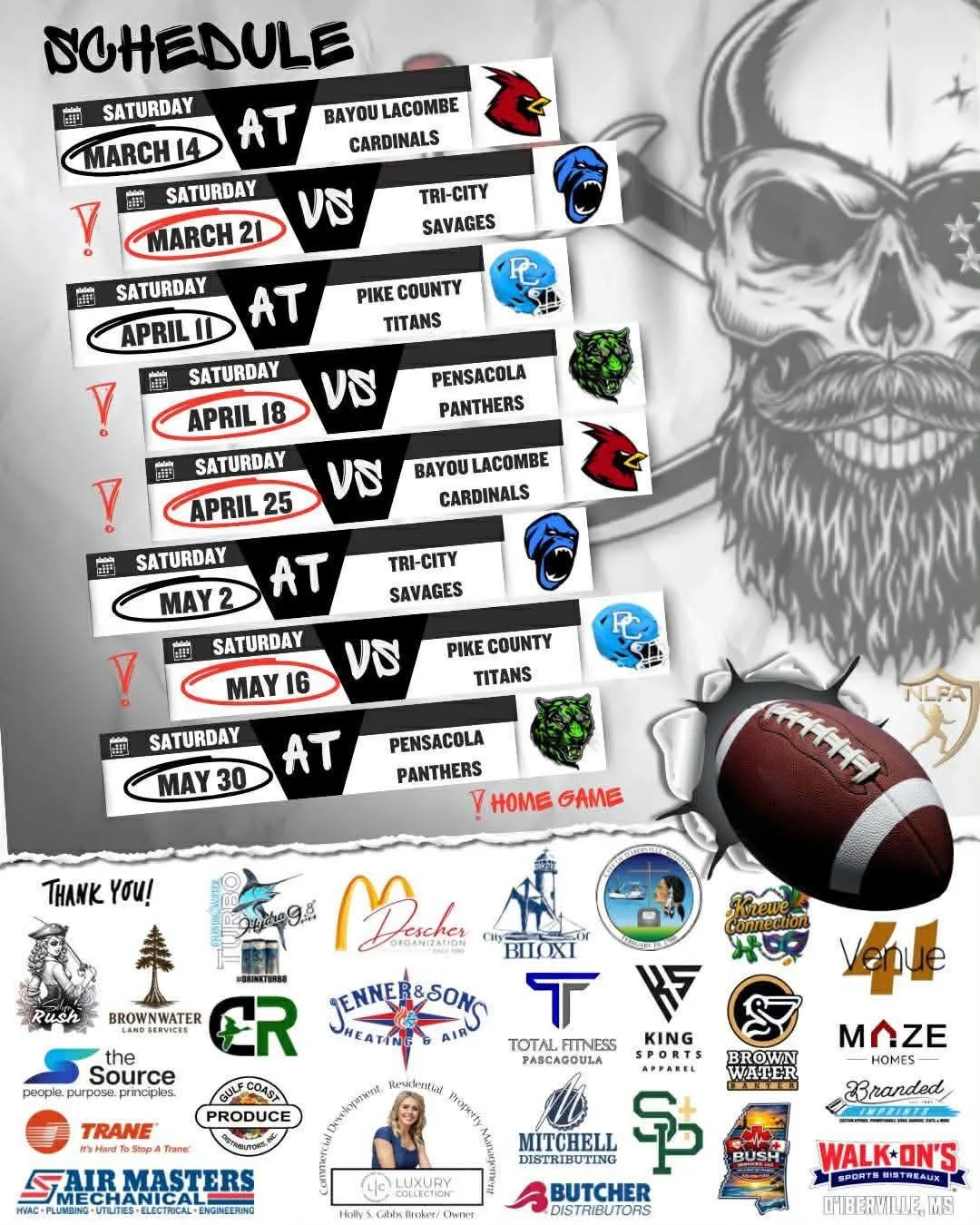If you want to follow what the Gulf Coast Raiders are building, look them up on social media and keep up with the team as they continue growing on the Mississippi Gulf Coast. 🙌 Show your support and stay locked in for the season ahead, with the opener set for March 14 at 7 PM in Mandeville against the Bayou Lacombe Cardinals and the first home game on March 21 at 7 PM at Saint Patrick Catholic High School.